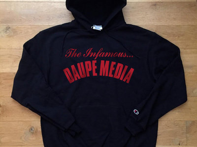 Official Champion tag-less Zip Front warm up Hoody with printed Daupe Media logo on front . Features Champion woven brand logo to the left arm. Only 100 units worldwide. Never to be repressed.